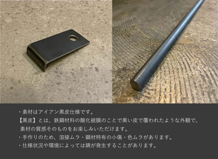 ・手作りの為、溶接ムラ・鋼材特有の小傷・色ムラがあります。