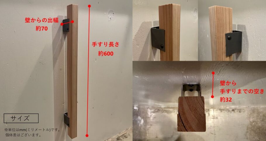 サイズ 手すり(木部):幅約30mm  長さ約600mm  奥行約38mm