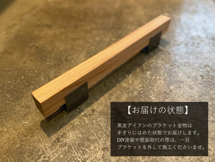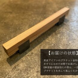 【塗装あり】天然木手すりI型600 黒皮アイアンブラケット付き