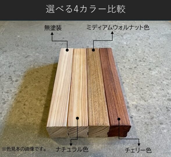 ワトコオイルのナチュラル・ミディアムウォルナット・チェリーの3色からお選びいただけます。