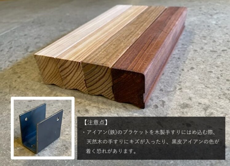 ・手すりの木部は天然木のため、小傷・木目ムラ・塗装ムラ・節が入る場合がございます。