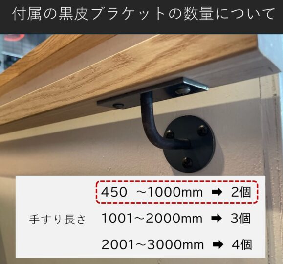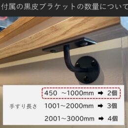 【無塗装】天然木 手すり450~1000 サイズオーダー 黒皮アイアンブラケット付き