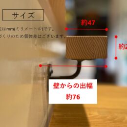| サイズ | 手すり(木部):幅サイズオーダー(450~1000) 奥行約47mm 高さ約25mm 取付時の壁からの出幅:約76mm |