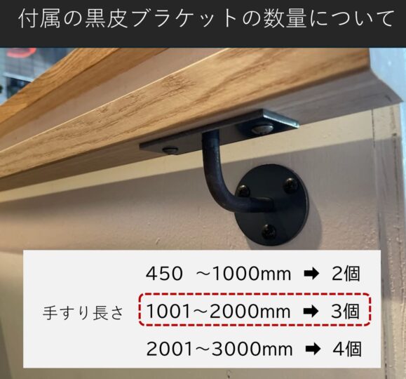 【塗装あり】天然木 手すり1001~2000 サイズオーダー 黒皮アイアンブラケット付き