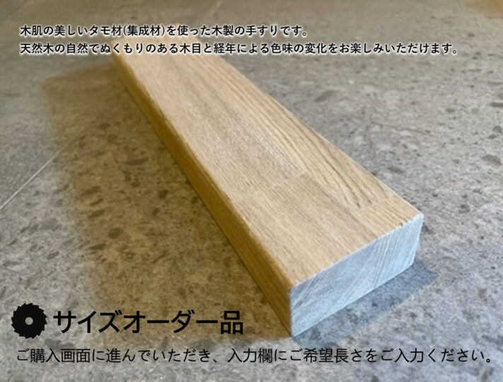 | サイズ | 手すり(木部):幅サイズオーダー(1001~2000) 奥行約47mm 高さ約25mm 取付時の壁からの出幅:約76mm |