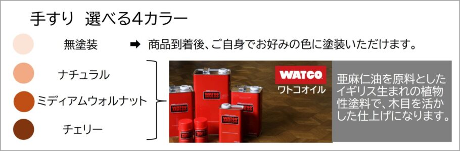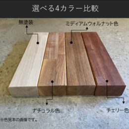 ワトコオイルの3色(ナチュラル・ミディアムウォルナット・チェリー)からご希望の色をご指定ください。