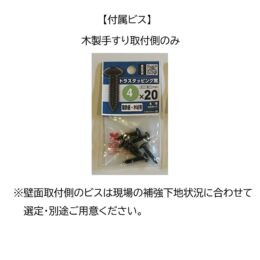 | 注意点 | ・使用状況や環境によっては錆が発生することがあります。 ・手作りの為、溶接ムラ・鋼材特有の小傷・色ムラがあります。 ・手すりの木部は天然木のため、小傷・木目ムラ・節が入る場合がございます。 ・取付については必ず下地のある壁面・天井面へ取付けしてください。 ※木部とブラケットを固定するビスは付属しております。 ※ブラケットと壁面を固定するビスは付属しておりません。取付する壁面に合わせて別途ご用意ください。 |