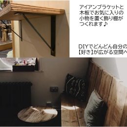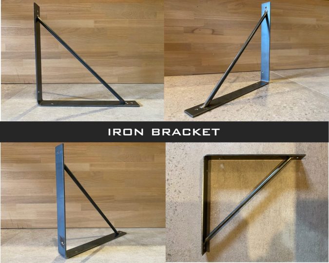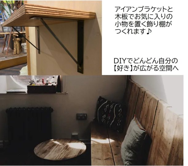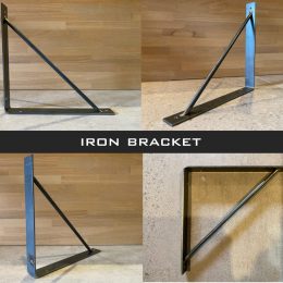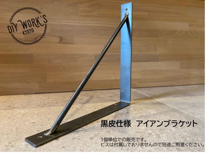 サイン「Sign」のオリジナルのアイアン棚受け金物です。鉄工所で1つ1つ職人さんに手作りしていただいているコダワリのアイテム。デザインはシンプルかつ無骨な黒皮仕上になっていますので素材の質感も楽しんでいただける金物です。DIYリノベーション,DIYリフォームにもオススメのアイテムです。