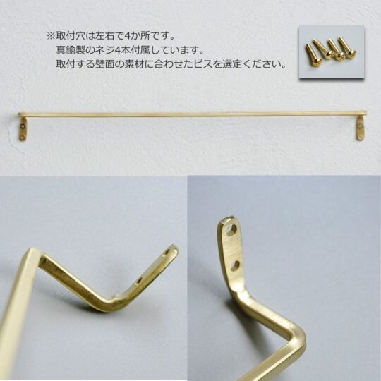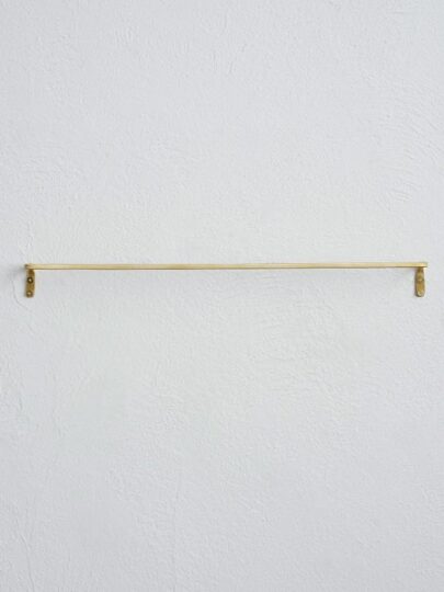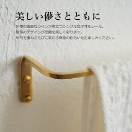 人気の角棒ブラスタオルレール。シンプルで細身のデザインは設置する場所を選びません。真鍮素材なので日々使うごとに経年変化し、落ち着いたやわらかい風合いになります。