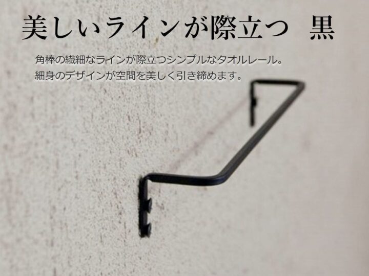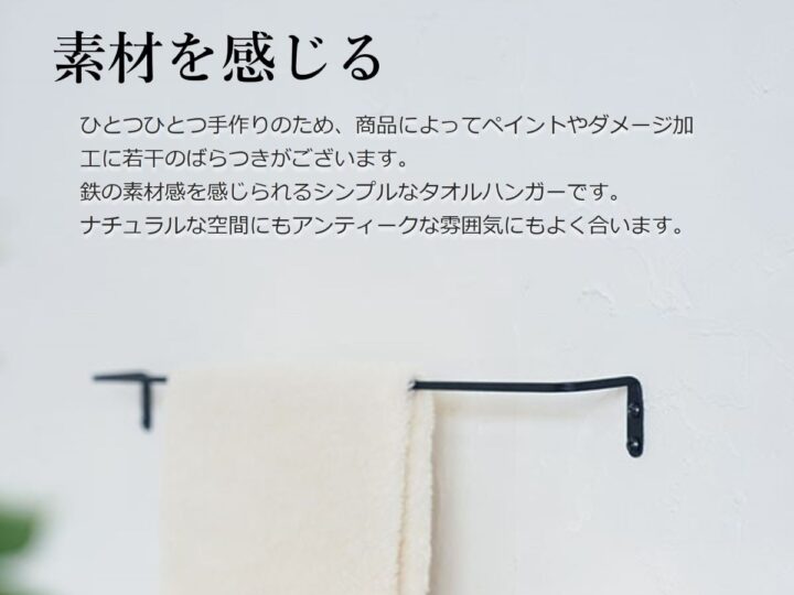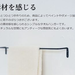細身のアイアンバーで作ったタオルレールです。洗面所やキッチン、お手洗いなど水まわりで活躍します。