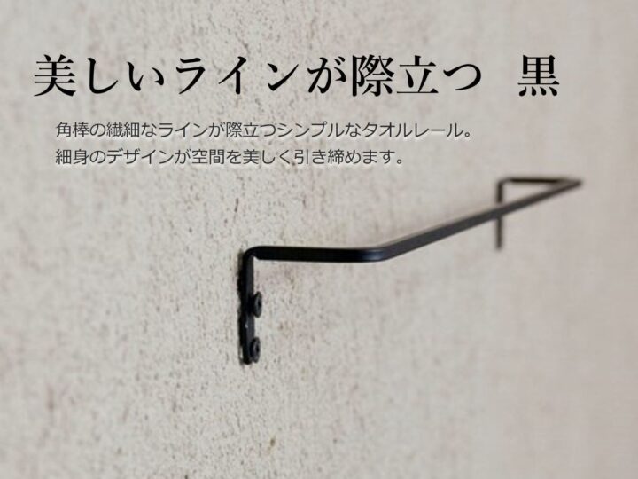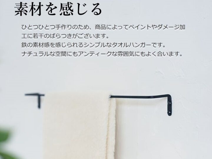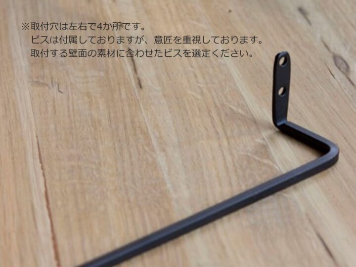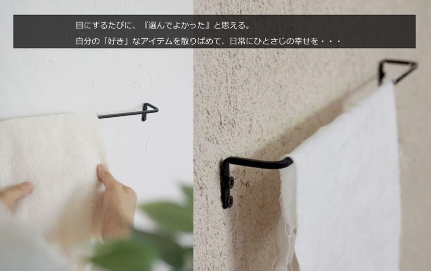 細身のアイアンバーで作ったタオルレールです。洗面所やキッチン、お手洗いなど水まわりで活躍します。