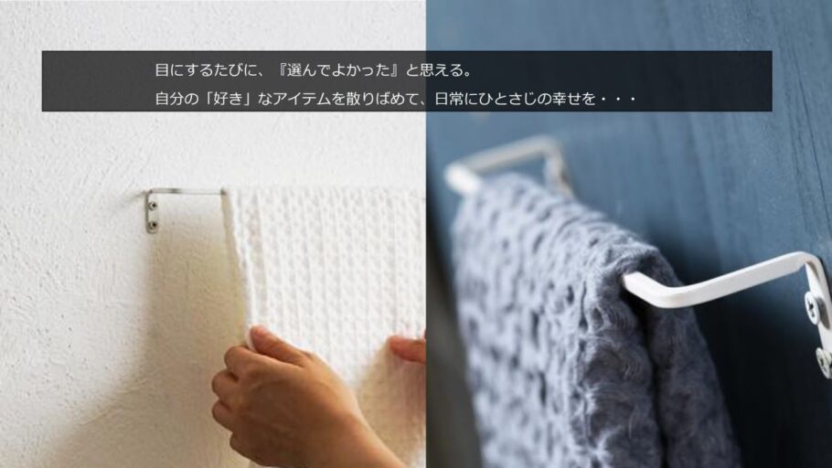 人気の角棒アイアンタオルレールにホワイトが加わりました。シンプルで細身のデザインは設置する場所を選びません。光沢をおさえたマットな質感です。