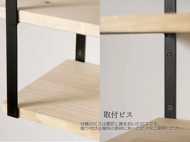 その他 ・この商品はウォールシェルフの部分のみとなります。棚板は付属しておりませんので、お好みの木製棚板を組み合わせてご利用ください。(棚板は奥行き234mmまで対応しております)