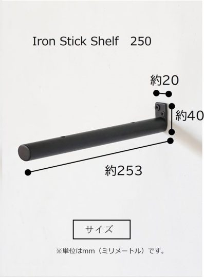 「Iron Stick Shelf 250」は、奥行き約25cmのシェルフパーツ。キッチンや洗面所、お手洗いなどの壁面に取り付ければコンパクトな収納棚が完成します。