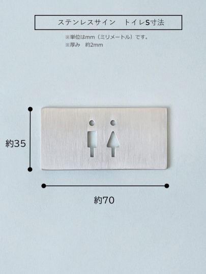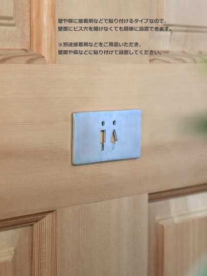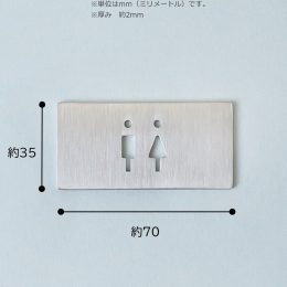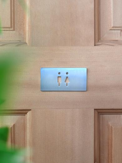 男女のシルエットがくりぬかれた、ステンレス製のトイレサインです。シンプルなアイコンは視認性に優れていて、店舗やオフィスなどにぴったり。サテン加工を施したステンレスは艶の無いマットな質感で、スタイリッシュな印象を与えます。
