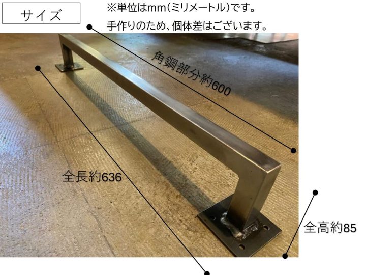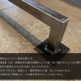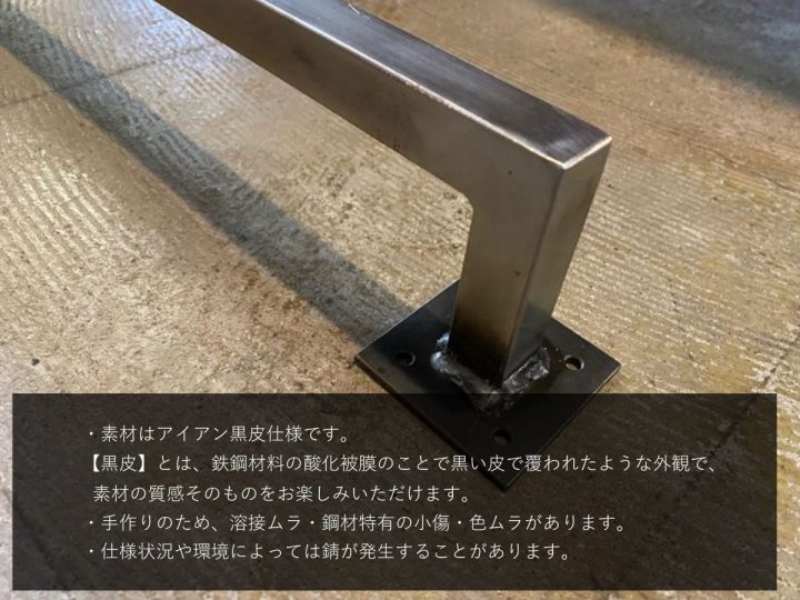 | 注意点 | ・使用状況や環境によっては錆が発生することがあります。 ・手作りの為、溶接ムラ・鋼材特有の小傷・色ムラがあります。 |