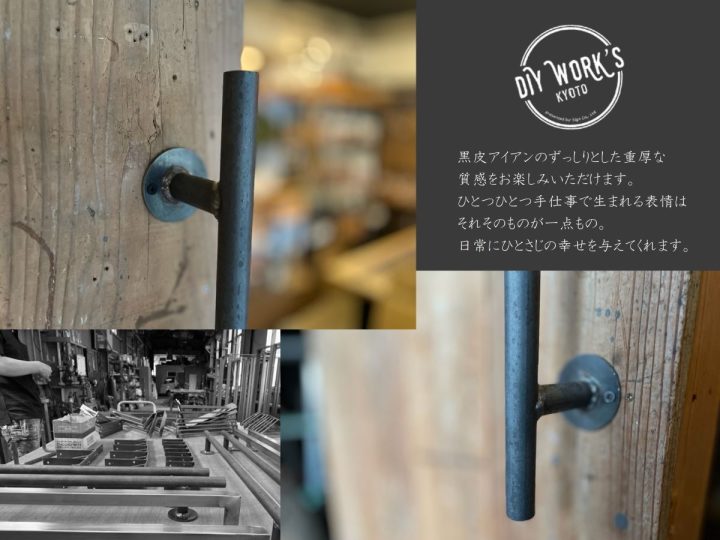 サイン「Sign」のオリジナルのアイアンバーです。取っ手としても縦向きに付けても、横向きに付けても大丈夫ですし、窓上の付けてエアプランツなどを吊るすバーとしてもご利用いただけます。商品は鉄工所で1つ1つ職人さんに手作りしていただいているコダワリのアイテム。デザインはシンプルかつ無骨な黒皮仕上になっていますので素材の質感も楽しんでいただける金物です。サイズはW=600・W=900の2種類をご用意しております。DIYリノベーション,DIYリフォームにもオススメのアイテムです。