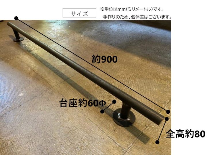 | サイズ | 約 W900 × D80× H60「台座」約60Φ 丸鋼約22丸 |
