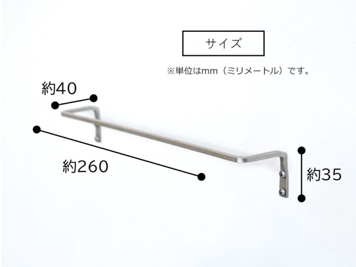 「ステンレスタオルレール S」は幅約26cmとコンパクトなサイズ感で、洗面所やお手洗いなどにおすすめです。